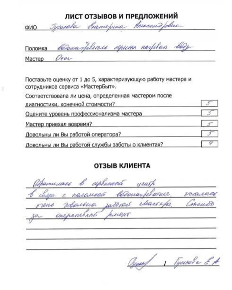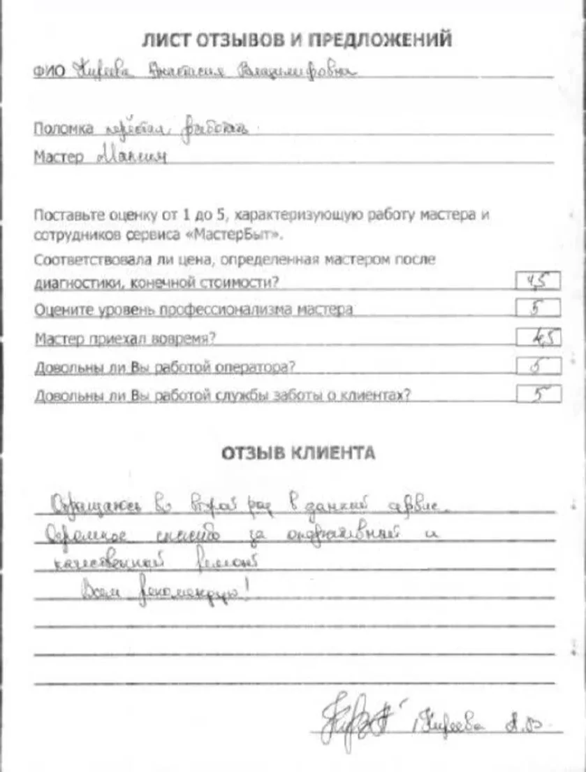 Мастер проверит работу и оформит гарантию на выполненные работы.